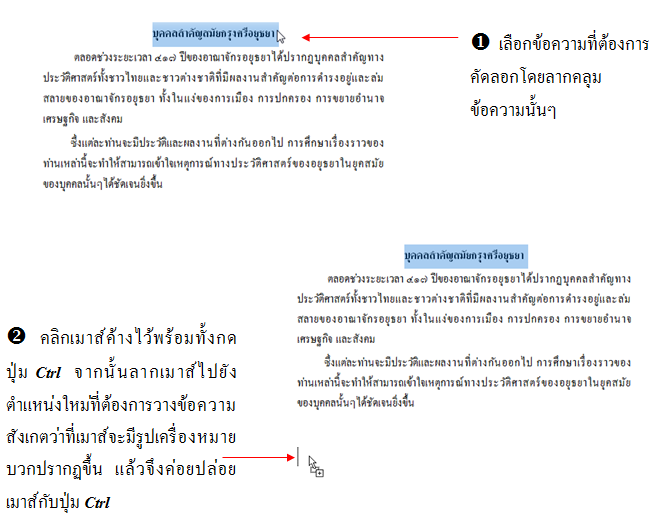 วิธีที่ 1 การคัดลอกโดยการใช้เมาส์