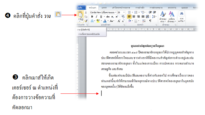 วิธีที่ 2 การคัดลอกโดยการใช้คำสั่งคัดลอก (Copy) และ วาง (Paste)