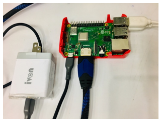 3. เสียบสาย Adapter เพื่อจ่ายไฟให้กับบอร์ด Raspberry Pi เพื่อเปิดการใช้งาน ก็จะเริ่มต้นเข้าสู่หน้าจอ Desktop ของ Raspberry Pi
