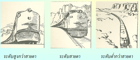 (BRLOW EYE LEVEL,BIRDS EYE VIEW) ระดับสายตา(EYE LEVEL, MAN EYEVIEW) และสูงกว่าระดับสายตา (ABOVE EYE LEVEL, WORS VIEW) ทั้งนี้ขึ้นอยู่กับมุมมอง