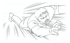 มาใช้วาดภาพนำทัศนียภาพแบบเส้นมาใช้การ์ตูนโดยใช้เส้นหลาย ๆ เส้นซึ่งอยู่รอบตัวเพื่อให้ภาพดูมิติใกล้-ไกล คนที่ดูคล้ายกับวิ่งไปรวมกัน ณ จุดรวมสายตาเพื่อเสริมให้รู้สึกว่ารูปคน