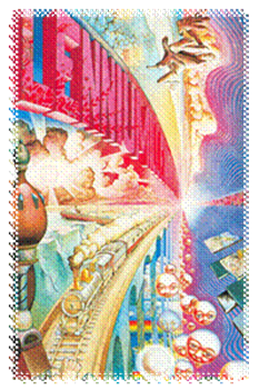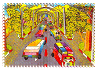 เป็นภาพที่จินตนาการโดย ใช้น้ำหนักของสีสันช่วยสร้างบรรยากาศให้เกิดระยะ และมิต