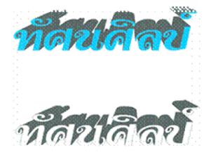 ภาพวาดของ ด.ช. รัชกาญจน์ มาแก้วการนำทัศนียภาพแบบเส้นมาใช้ในงานเทคนิคสีชอล์กน้ำมัน แสดงการนำประสบการณ์ออกแบบตัวอักษรให้ดูมีมิติทั้งด้านความหนาตรงที่เกิดจากการระลึกเรื่องราวเดิมมาวาดด้วย