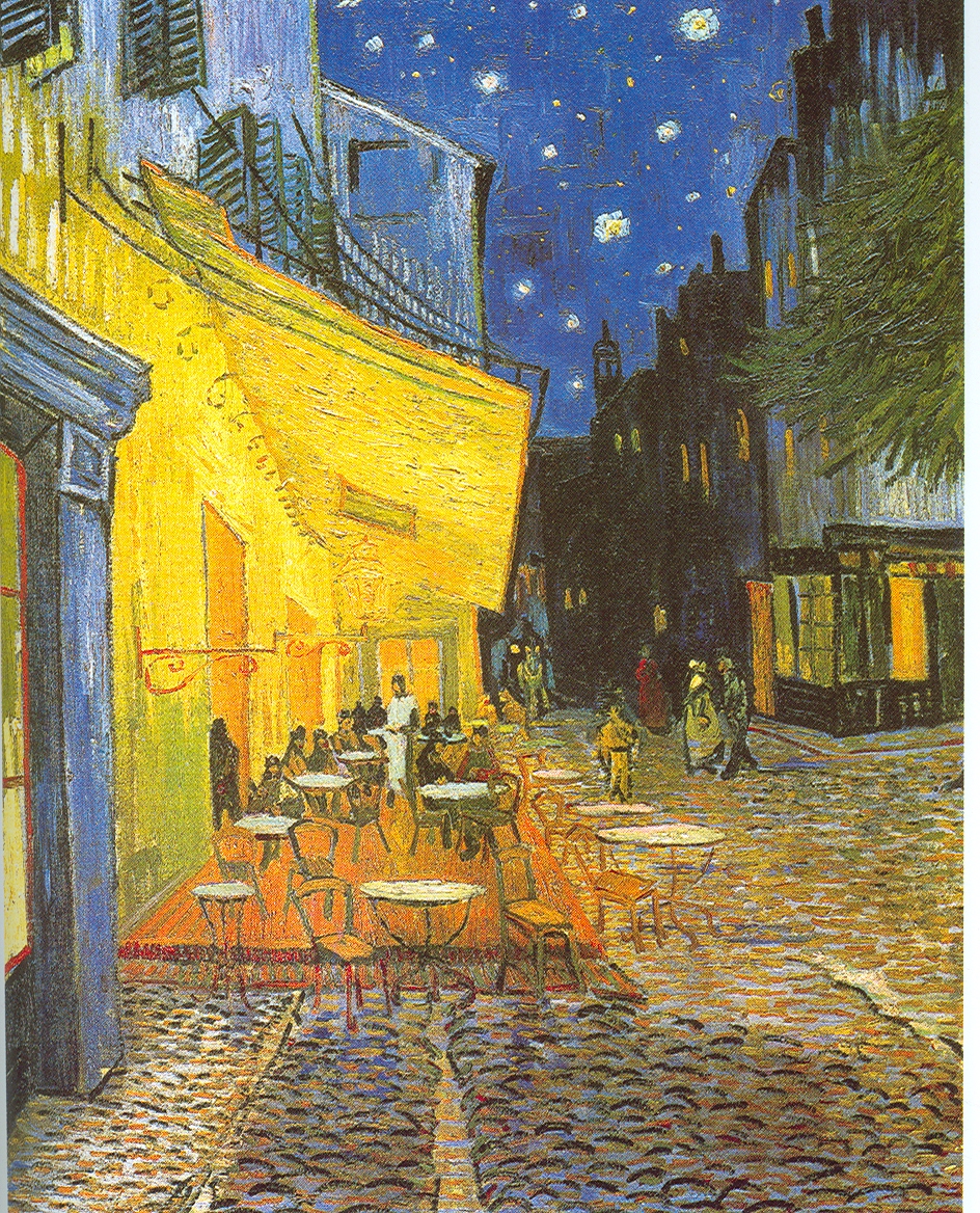 กลางคืนที่ลานหน้าคาเฟ่(CAFÉ TERRACE AT NIGHT, 1888)เทคนิค สีนํ้ามัน ผลงานของ เราได้อะไรจากการวาดภาพทัศนียภาพ การวาดภาพทัศนียภาพมีประโยชน์และคุณค่าในด้านต่าง