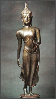 เนื้อสัมฤทธิ์ สูง ๖๓ ซม. ศิลปะไทยแบบสุโขทัยตอนปลายพุทธศตวรรษที่ ๑๙-๒๐
