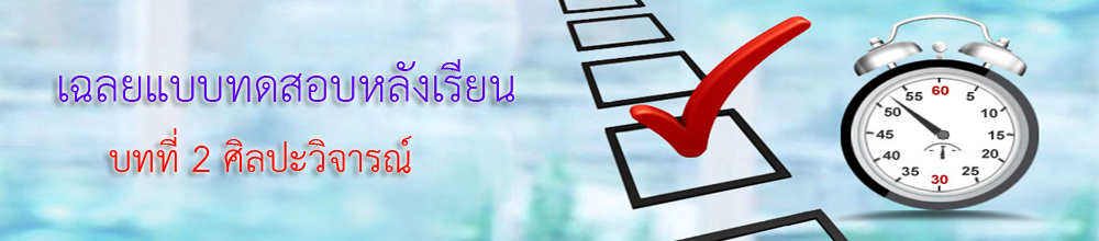 | 9. องค์ประกอบของการวิจารณ์งานศิลปะมี 3 ส่วน ข้อใดที่ไม่ใช่ |