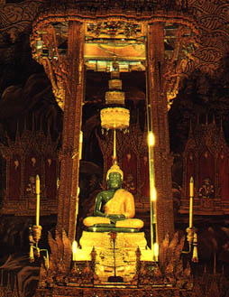 พระพุทธมหามณีรัตนปฏิมากร หรือพระแก้วมรกต พระพุทธรูปคู่บ้านคู่เมืองกรุงรัตนโกสินทร์ เป็นพระพุทธรูปศิลปะเชียงแสนตอนต้น ทำจากหินหยกสีเขียวเข้มทึบแสง ปางสมาธิ ขนาดหน้าตัก 43 ซม. สูง 55 ซม.