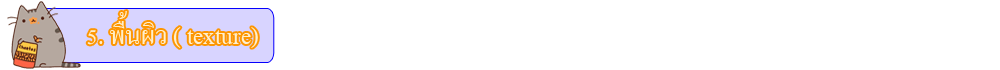 หมายถึง ลักษณะภายนอกของวัตถุที่เรามองเห็นและสัมผัสได้ ภาพที่มีลักษณะพื้นผิวที่แตกต่างกันจะให้ความรู้สึกสนุกสนานตื่นเต้นและมีชีวิตชีวา พื้นผิวสามารถก่อให้เกิดความรู้สึกในลักษณะต่าง ๆ กันเช่น หยาบ ละเอียด มันวาว ด้าน และขรุขระ เป็นต้น