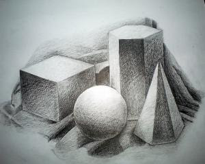 4.2. สิ่งที่มีลักษณะแน่นทึบแบบ 3 มิติ เช่นงานประติมากรรม สถาปัตยกรรม หรือลักษณะ ที่มองเห็นเป็น 3 มิติในงานจิตกรรม รูปทรงในทางศิลปะอาจแบ่งได้ 3 ประเภทคือ