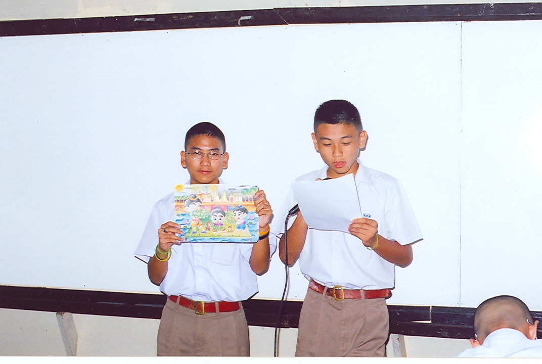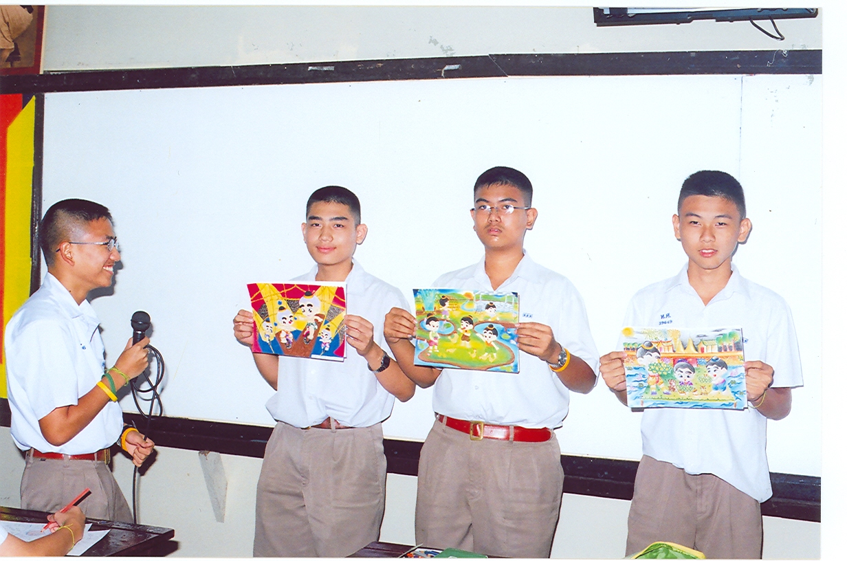 นักเรียนเจ้าของผลงาน นำเสนอผลงานเพื่อสื่อให้ผู้ชมเข้าใจในการสร้างสรรค์