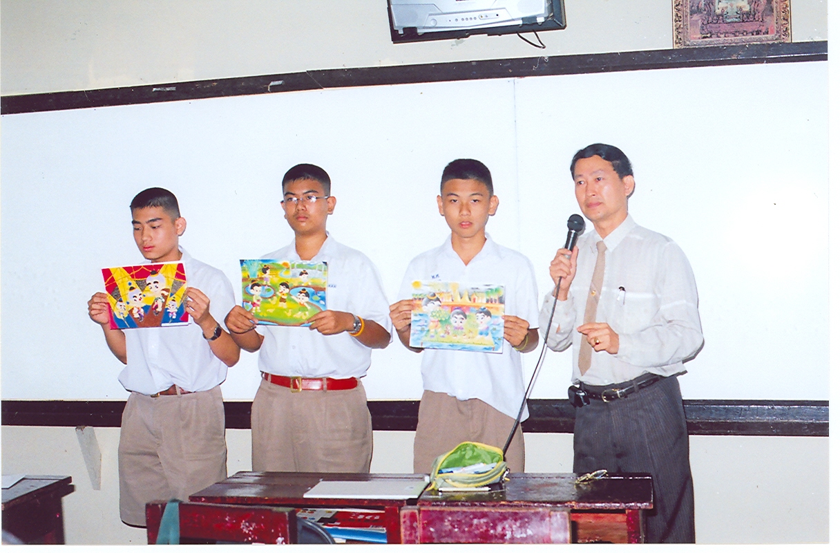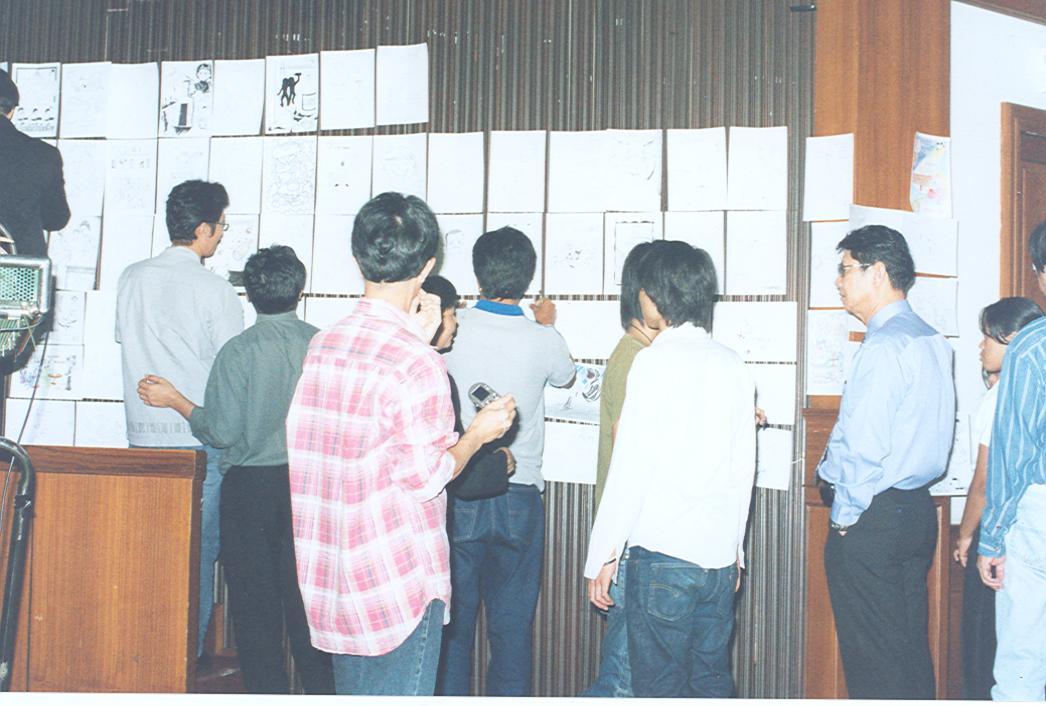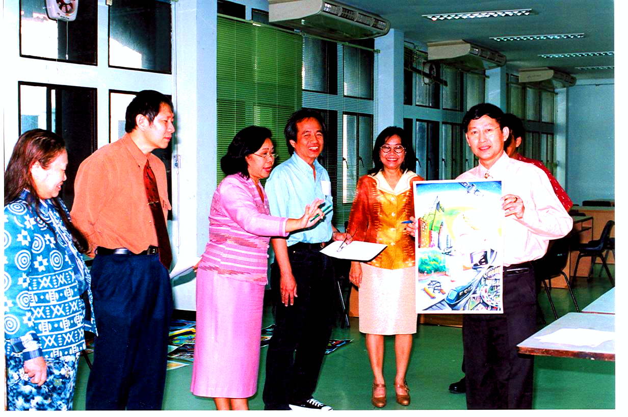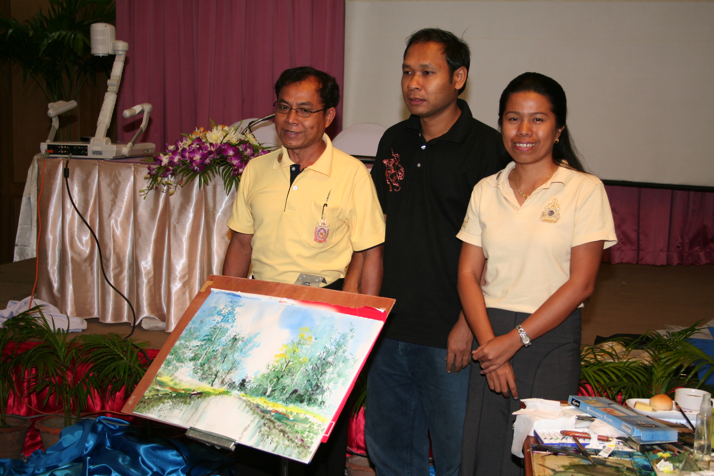 คณะกรรมการตัดสินการแข่งขันการวาดภาพ กำลังประเมินผลงานผู้เข้าร่วมการแข่งขัน