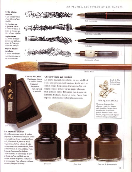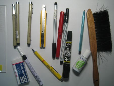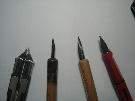 | ปากกาแบบจุ่มน้ำหมึก ซึ่งมีเบอร์และขนาดที่ต่างกันออกไป |