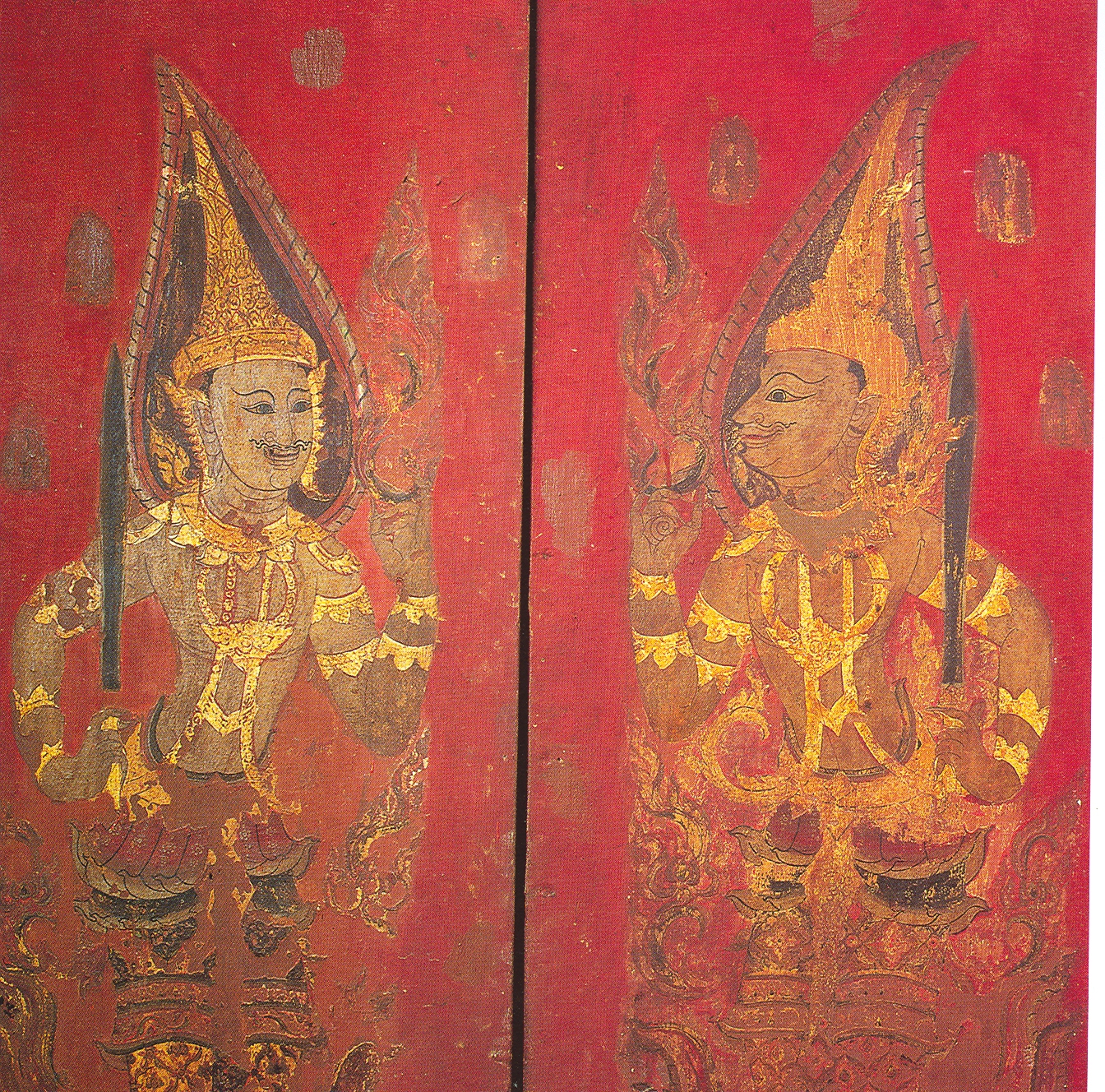 รูปทวารบาล งานจิตรกรรมตกแต่งฝีมือพระอาจารย์นาค ที่หอไตร วัดระฆังโฆสิตาราม กรุงเทพฯ