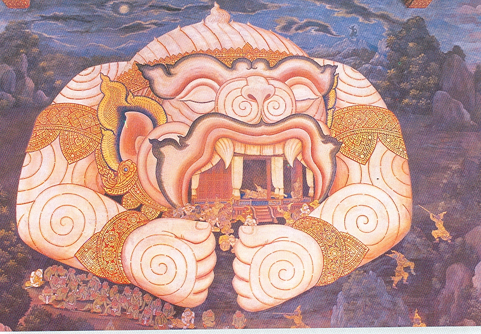 ภาพวรรณคดีไทย เรื่อง "รามเกียรติ์" ตอนหนุมานอาสาอมพลับพลา พระราม