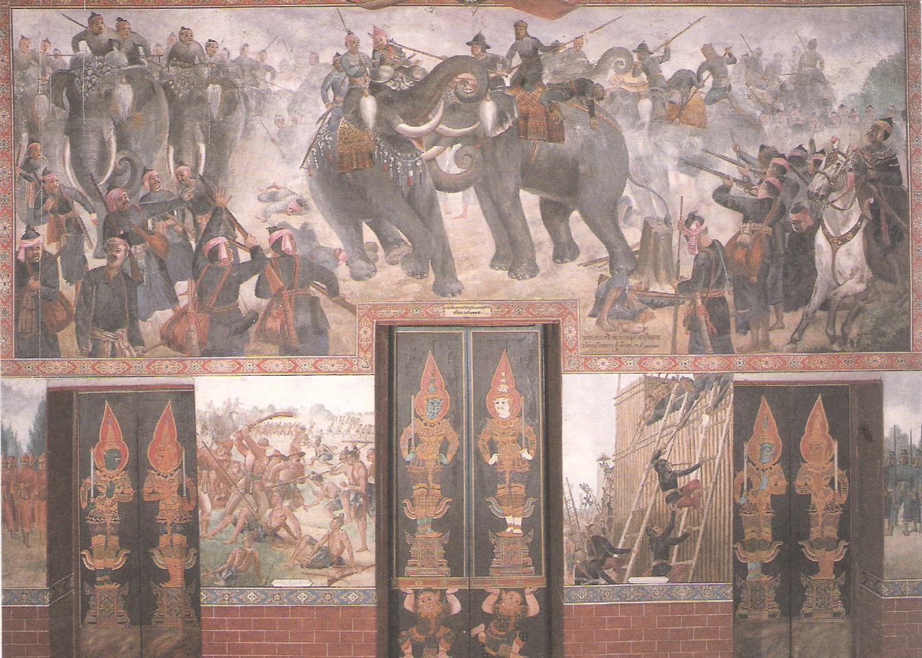 ภาพจิตรกรรมฝาผนังวัดสุวรรณดาราราม จังหวัดพระนครศรีอยุธยา แสดงวีรกรรมยุทธหัตถี