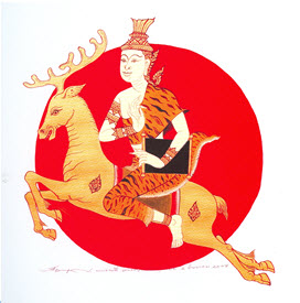 ภาพร่างสีต้นแบบเทพประจำวันพฤหัสบดี ชุด "ป่าหิมพานต์" ผลงานของ ปรีชา เถาทอง ศิลปินแห่งชาติ