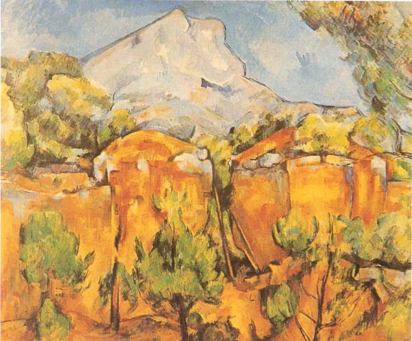 ปอล เซซาน "ภูเขาสะเตอวิกตัวร์ มองจากเมืองปิเบอมูสการ์รี" ราว พ.ศ. 2441-43 ขนาดภาพ 25.5 นิ้ว x 32 นิ้ว พิพิธภัณฑ์ศิลปะบัลติมอร์ รัฐแมรี่แลนด์ ประเทศสหรัฐอเมริกา