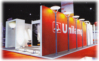 การกำหนดสีในวรรณะอุ่น คือ สีแดงและสีส้ม ในงานออกแบบโฆษณาโคมไฟฟ้า การใช้ สีในวรรณะอุ่นจะให้ความรู้สึกสว่างไสว และมีพลัง