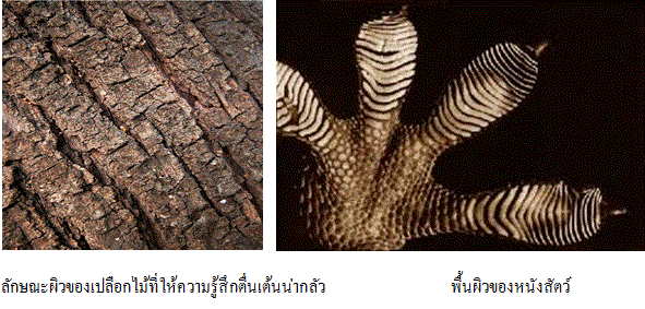 ในธรรมชาติสิ่งแวดล้อมมีลักษณะผิวที่น่าสนใจ ที่ให้คุณค่าทั้งทางด้านความงามและความรู้สึกต่างๆ เช่น พื้นผิวดินที่แตกระแหง พื้นผิวของเปลือกไม้ พื้นผิวของหนังสัตว์ เป็นต้น