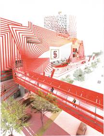 การออกแบบ อาคาร ของห้างสรรพสินค้าเชื่อมโยงกับสะพานลอย