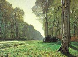 ภาพบริเวณว่างของป่าธรรมชาติที่มีพื้นที่โล่งของสนามหญ้าอยู่ระหว่างต้นไม้ใหญ่