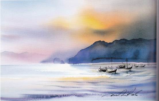 เป็นการจัดภาพแบบสองข้างไม่เท่ากัน แต่เท่ากันด้วยความรู้สึกเพราะท้องทะเลที่ไกลโพ้น