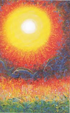 ชื่อภาพ “เริงตะวัน” เทคนิคสีอะคริลิค