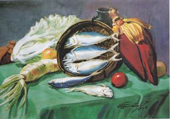 ชื่อผลงาน “หุ่นนิ่ง” เทคนิค สีน้ำ