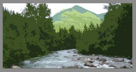 10.ใช้ น้ำเงิน+น้ำตาล 1:1 แทนสีดำ ผมไม่ใช้ดำล้วน เพราะสีดำมีความรู้สึกว่าหนักและ ทึบตันเกินไป ผมใช้สีดำจริงๆในปริมาณที่น้อยมากๆในการวาดแต่ละรูป และบางรูปก็ไม่ ใช้เลย เอามาเน้นในส่วนที่เป็นซอกลึกๆครับ รวมทั้ง กิ่งไม้ต่างๆ เนินเขา ดูต้นแบบเยอะๆ นะครับ เพื่อดูลักษณะของก้อนหินและต้นไม้ สังเกตว่า ผม เองก็ไม่ได้เขียนเหมือนแบบ ทุกอย่าง ไปเกร็งกับความเหมือนมากเกินไปก็ไม่สนุกและเครียด เอากลางๆพอครับ จับ แต่ลักษณะอย่างเดียวครับ เรื่องของระยะหน้า-หลังเป็นเรื่องสำคัญในการวาดภาพ ก้อน หินส่วนหน้าเราก็ควรเน้นให้คมชัดกว่าด้านหน้านะครับ รวมถึงขนาดก็เป็นสิ่งที่สามารถ บอกระยะได้เช่นกัน