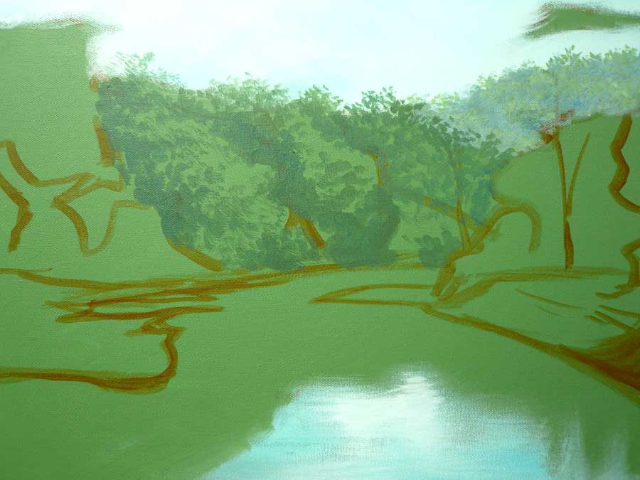 7.ทำมาจนถึงกลุ่มข้างหน้าเลยครับ ดูต้นแบบประกอบเยอะๆครับ เอาสีนี้มาลงตรงส่วนที่ เป็นเงาของน้ำด้วยครับ ซึ่งจะมีเขียวเข้มแซมอยู่