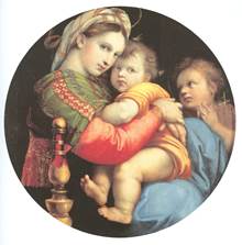 แม่พระนั่งบัลลังก์ (MADONNJA DELLA SEDIA) ที่มา : หอสมุดแห่งชาติ เป็นภาพที่นำแนวเส้นโค้งของแขนที่โอบกอด และน้ำหนักสีที่ให้ความรู้สึกอ่อนนุ่มมาใช้ เพื่อให้เกิดความอ่อนโยน