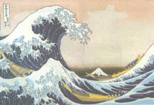 คลื่นยักษ์ (THE GREAT WAVE AT KANAGAWA) ที่มา : หอสมุดแห่งชาติ เทคนิคภาพพิมพ์ลายแกะไม้ ผลงานของ คะทซึชิคะ โฮะคุไซ จิตวิทยาในการใช้เส้น เส้นเป็นส่วนประกอบของทัศนธาตุทางศิลปะ ที่มีปฏิกิริยาโต้ตอบกับสายตาของเราให้เกิดอารมณ์ความรู้สึกต่างๆ ได้ เราจึงควรศึกษาอารมณ์และความรู้สึกของเส้นไว้ เพื่อเป็นประโยชน์ในการสื่อความหมาย อารมณ์และความรู้สึกของเส้น