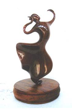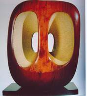 รูปทรงกลวงด้วยการตกแต่ง (HOLLOW FORM WITH WHITE INTERIOR) ที่มา : หอสมุดแห่งชาติ 4. รูปร่าง รูปทรงกับการนำมาใช้ เป็นการนำรูปร่าง รูปทรงมาประยุกต์ใช้ในการออกแบบเพื่อสื่อแสดงรูปลักษณะของสิ่งที่จะถ่ายทอด เพื่อสร้างมิติของผลงาน และเพื่อแสดงอารมณ์ความรู้สึก เช่น จิตรกรรมภาพพระบางในเสมา ของ อุดม หวานจริง ภาพพระพุทธบาท ของพิชัย นิรันต์ และประติมากรรมชื่อภาพ รำไทย 2 ของ ปัญญา ทองจุน เป็นต้น