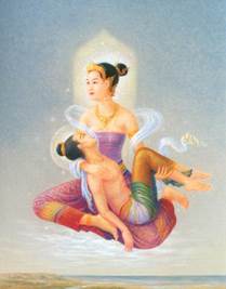 นางมณีเมขลากับพระมหาชนก ที่มา : หอสมุดแห่งชาติ