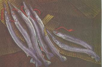 COMMON NEEDLEFISH NO 3 ที่มา : หอสมุดแห่งชาติ แนวทางการสร้างสรรค์งานทัศนศิลป์สื่อความหมายเป็นเรื่องราว 1. กำหนดเรื่องราวที่จะสื่อความหมาย เพื่อนำไปใช้ออกแบบสร้างสรรค์ อาจเป็นเรื่องเกี่ยวกับความงามในธรรมชาติ อารมณ์ความรู้สึกของมนุษย์ ความเชื่อ ศาสนา ประวัติศาสตร์ สงคราม การเมือง ชีวิตความเป็นอยู่ เป็นต้น 2. ศึกษาเรื่องราวหรือเนื้อหาที่จะใช้สร้างสรรค์ให้สัมพันธ์กับทัศนธาตุทางศิลปะ เพื่อให้การถ่ายทอดผลงานสื่อความหมายได้อารมณ์ ความรู้สึก สอดคล้องกับเรื่องราวเนื้อหา 3. ออกแบบ เพื่อให้ได้ผลงานที่มีความสัมพันธ์กับเรื่องราวที่จะสื่อความหมาย และมีองค์ประกอบภาพสมบูรณ์ (ดูหน่วยที่ 2 เรื่องที่ 1-5 ของ ม.1 และหน่วยที่ 1 เรื่องที่ 3 ของ ม.3 ประกอบเพิ่มเติม) 4. เลือกกลวิธีสร้างสรรค์ เพื่อเป็นแนวทางในการจัดเตรียมวัสดุอุปกรณ์ 5. จัดเตรียมวัสดุอุปกรณ์ เพื่อไว้ใช้สร้างสรรค์ผลงานตามกลวิธีที่ได้เลือกไว้ 6. ดำเนินการสร้างสรรค์ เพื่อได้ผลงานตามที่ออกแบบไว้
