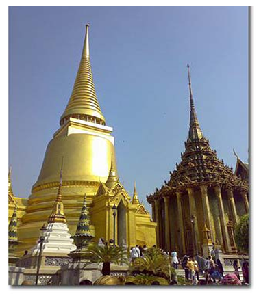 วัดพระศรีรัตนศาสดารามหรือวัดพระแก้ว สร้างขึ้นในพระบรมมหาราชวัง ในสมัยรัตนโกสินทร์ ในลักษณะเดียวกับวัดพระศรีสรรเพชญ์ที่กรุงศรีอยุธยา โดยมีรูปแบบของมณฑปทรงมงกุฎ เป็นเอกลักษณ์ทางสถาปัตยกรรมสมัยรัตนโกสินทร์
