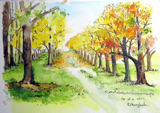 2.ระบายสีอ่อนแก่เรียบสีเดียว