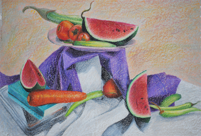 4. ควรวาดภาพวัตถุที่มีขนาดใหญ่หรือปานกลาง เพราะสีชอล์กไม่เหมาะกับภาพวัตถุที่มีขนาดเล็ก เวลาระบายจะดูไม่สวย