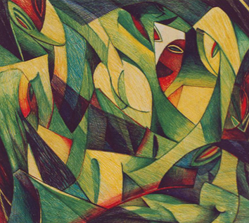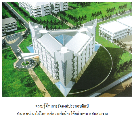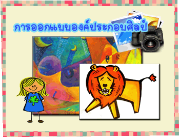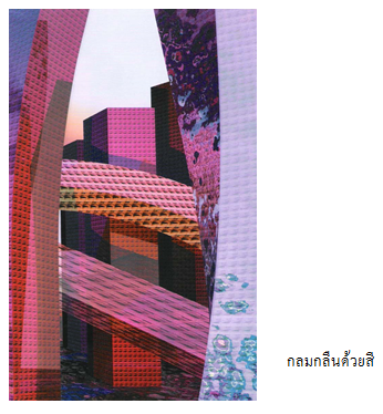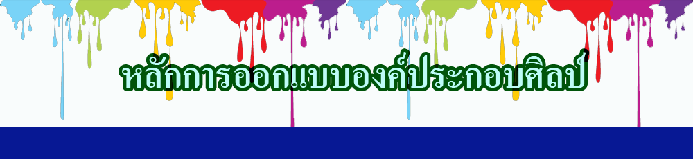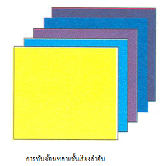 6. การทับซ้อนหลายชั้นเรียงลำดับ เป็นการนำรูปร่าง รูปทรง มาวางทับกันหลายชั้นทำให้เกิดมิติ มองดูมีระยะใกล้ – ไกล และมีความตื้นลึก