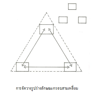 3. รูปร่าง รูปทรงสามสิ่งมาจัดวางในลักษณะกรอบสามเหลี่ยม แม้จะจัดวางห่างกันแต่จะรู้สึกว่าของสามสิ่งนั้นมีแรงดึงดูด และพยายามรวามเป็นหน่วยเดียวกัน