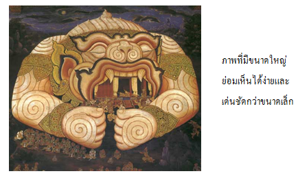 3. จุดเด่น (Dominance) จุดเด่นหรือจุดสนใจ หมายถึง ส่วนสำคัญที่ปรากฏชัดสะดุดตาในผลงานศิลปะ จุดเด่นเกิดจากการเน้น (Emphasis) ที่ดี ตำแหน่งของจุดเด่น นิยมจัดวางไว้ในระยะหน้า (Foreground) หรือระยะกลาง (Middle Ground) แต่ไม่ควรวางไว้ตรงกลางพอดี เพราะจะทำให้ภาพเกิดความรู้สึกนิ่ง ไม่เกิดการเคลื่อนไหว จุดเด่นที่ดีควรมีเพียงจุดเดียว และมีพื้นที่ประมาณ 20 – 30 % ของพื้นที่ทั้งหมด