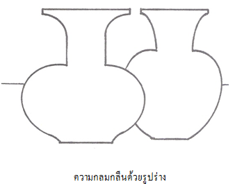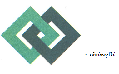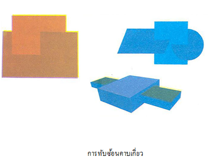 3.การทับซ้อนคาบเกี่ยว เป็นการนำรูปร่าง รูปทรง มาวางเสียบกันเหมือนฝังอยู่ในอีกรูปหนึ่ง