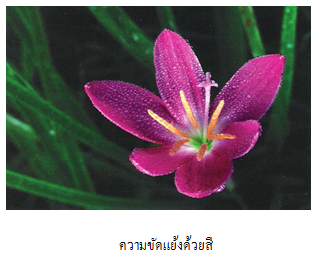 5. ความขัดแย้ง (Contrast) หมายถึง การนำทัศนธาตุมาจัดองค์ประกอบศิลป์ให้เกิดการตัดกัน หรือ ขัดแย้งกัน เพื่อลดความกลมกลืนลงบ้าง เพราะบางทีความกลมกลืนที่มากไปอาจจะดูจืดชืด น่าเบื่อหน่าย ความขัดแย้งที่พอเหมาะจะช่วยให้งานดูมีชีวิตชีวา น่าสนใจ น่าตื่นเต้น
