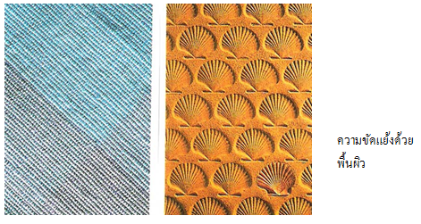 6.ความขัดแย้งด้วยพื้นผิว เป็นการนำลักษณะผิวที่แตกต่างกันมาจัดรวมกันในงานศิลปะ เช่น ลักษณะผิวหยาบขัดแย้งกับลักษณะผิวละเอียด การแก้ไขจะต้องลดปริมาณลักษณะผิวส่วนหนึ่งส่วนใดให้น้อยลงหรือเพิ่มลักษณะผิวที่ใกล้เคียงกันหรือเกลี่ยให้ผสมผสานกัน