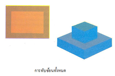 2. การทับซ้อนทั้งหมด เป็นการนำรูปร่าง รูปทรง มาวางทับลงบนอีกรูปทรงหนึ่ง แบบเต็มส่วน ไม่ให้เหลื่อมกัน