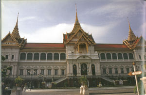 พระที่นั่งจักรีมหาปราสาท ที่มีรูปแบบผสมผสานระหว่างแบบศิลปะไทยคือส่วนของหลังคาทรงมณฑปย่อมุมไม้สิบสองที่งดงาม กับศิลปะตะวันตกคือส่วนของอาคารบานประตูหน้าต่างโค้งกลม ซึ่งได้รับการขนานนามว่า “ฝรั่งสวมชฎา”