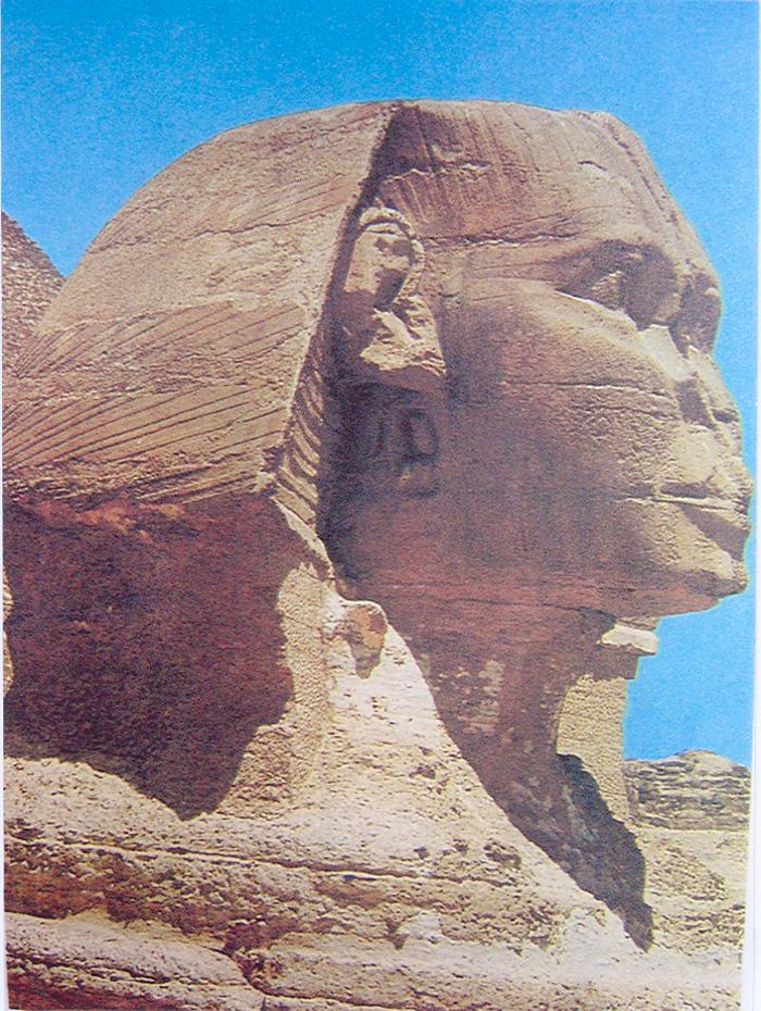 ประติมากรรม งานประติมากรรมอียิปต์มีทั้งภาพลอยตัวภาพนูนสูง นูนต่ำและภาพแกะลายลึกลงไปในพื้นหิน เป็นประติมากรรมตกแตงอยู่ตามวิหารและห้องเก็บศพภายในปิรามิด ตลอดจนฝาโลงเก็บศพอาบน้ำยา งานประติมากรรมบางชิ้นมีขนาดใหญ่มาก จนอาจจัดเข้าไว้ในจำพวกงานก่อสร้าง เช่น รูปสฟิงค์ (SPHINX) แห่งกิเซห์ เป็นต้น สฟิงค์ (SPHINX) ประติมากรรมลอยตัว เป็นรูปศีรษะคนขนาดมหึมา ศิลปะอียิปต์ยุคก่อนประวัติศาสตร์ 2500 ปี ก่อนคริสตศักราช ปัจจุบันอยู่ที่ประเทศอียิปต์