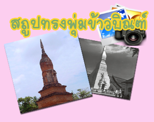 2.3 สถาปัตยกรรม ลักษณะของสถาปัตยกรรมสมัยสุโขทัยที่เป็นแบบสุโขทัยแท้คือ สถูปทรงพุ่มข้าวบิณฑ์ หรือ “ทรงดอกบัวตูม” มีรูปทรงสถูปเป็นเชิงชั้นที่งดงามได้สัดส่วน และสมดุลยกัน ฐานล่างสุดเป็นทรงสี่เหลี่ยม 3 ชั้น ก่อนถึงตัวสถูปเป็นฐานแบบย่อมุมไม้สิบสอง
