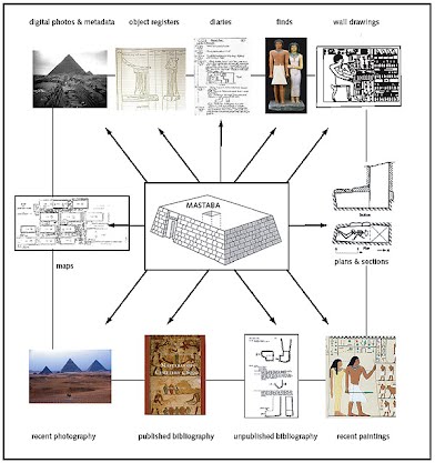 เป็นที่เก็บศพของขุนนางและสามัญชน ทำด้วยอิฐหรือหิน ผังเป็นรูปสี่เหลี่ยมผืนผ้า ผนังด้านนอกทำมุม 75 องศา หลังคาแบนราบ สร้างอยู่บนห้องเก็บศพใต้ดิน มีปล่องจากหลังคาลงสู่ห้องเก็บศพ รูปแบบอาจพัฒนามาจากมูลดินเหนือหลุมศพของสุสานในช่วงแรกๆ มาสตาบาถูกสร้างรวมกลุ่มอยู่รอบๆ ปิรามิดของฟาโรห์