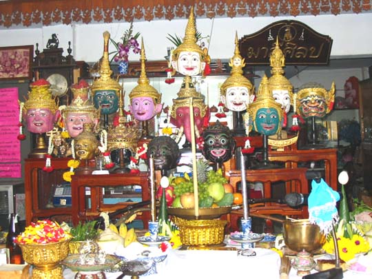 ที่มา : http://www.oknation.net/blog/phaen/2007/06/19/entry-1 พิธีไหว้ครูโขน ละคร ประกอบด้วยส่วนสำคัญ ๔ ส่วน คือ ครูผู้กระทำพิธีไหว้ครู (ตัวแทนพระภรตฤษี) ศีรษะโขน (ตัวแทนครูโขน ละคร ) เครื่องสังเวย เครื่องเซ่น เครื่องกระยาบวช เครื่องบูชา และปี่พาทย์เครื่องใหญ่ หรือ ปี่พาทย์เครื่องคู่ การไหว้ครูนาฏศิลป์ โขน ละครนั้น มีพิธีถึง ๓ ขั้นตอน คือ พิธีไหว้ครู พิธีครอบครู และพิธีรับมอบ ทั้ง ๓ ขั้นตอนนี้ เป็นพิธีที่บูรพาจารย์ได้กำหนดระเบียบและบัญญัติแบบแผนให้ปฏิบัติด้วยหลักเกณฑ์อันดี สืบเนื่องมาแต่โบราณ โดยกำหนดว่า ครูผู้ใหญ่จะทำพิธีไหว้ครู พิธีครอบและพิธีมอบ ก็ต่อเมื่อศิษย์รำเพลงช้า เพลงเร็วได้แล้ว ถ้าศิษย์ศึกษาและปฏิบัติจนเกิดความชำนาญ มีความรู้แตกฉาน หมายถึงรำหน้าพาทย์ชั้นสูง ได้อย่างแม่นยำ สมควรที่จะเป็นตัวแทนของครู สืบทอดการอบรมสั่งสอนชนรุ่นหลังได้เข้าร่วมพิธีมอบอันเป็นพิธีต่อจากพิธีครอบ